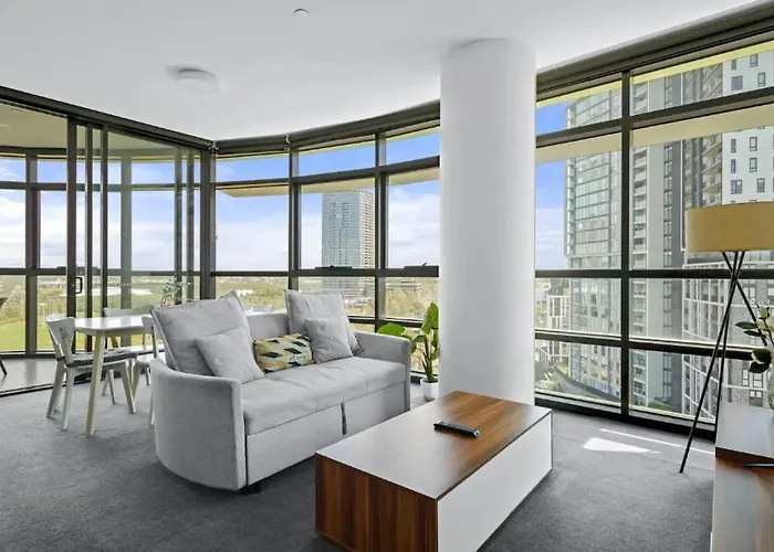 Situado a 950 metros del Estadio ŠKODA, el 105Op Abnb-Style Spectacular Park View 2Br Apt With Free Parking Sídney también cuenta con un acceso fácil a la estación de tren Olympic Park, a tan solo 5 minutos a pie. El apartamento, situado no muy lejos del Parque Olímpico de Sídney, ofrece una terraza con vistas a la ciudad.